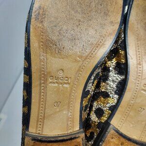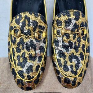 Gucci Jordaan Gold Black Leopard Horsebit Loafer Shoe