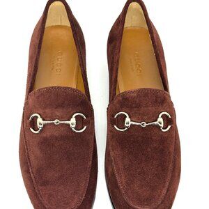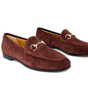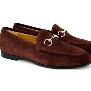 Gucci Jordaan Horsebit Bit Suede Slip On Loafers Flat Shoes Chocolate