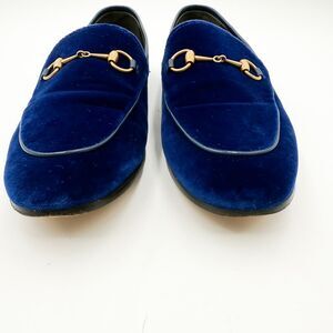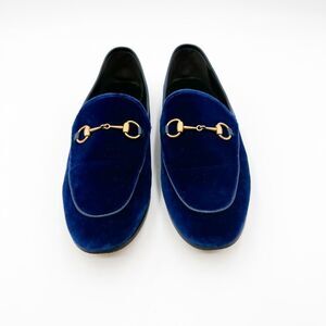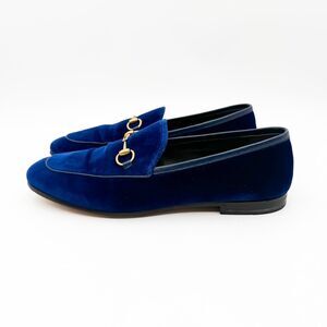 Gucci Jordaan Horsebit Blue Velvet Loafers Flats EU 38.5 US 8.5
