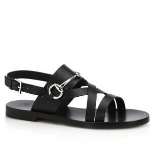 Gucci Juliette Black Leather Horsebit Open Toe Flat Sandals - 39