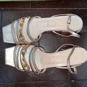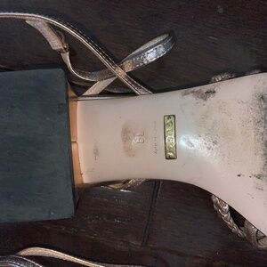 Gucci rose gold, leather ankle straps, woven leather, gold hardware, buckle closure, minimalist heel, Italian craftsmanship, luxury sandals, slip-on style, elegant footwear