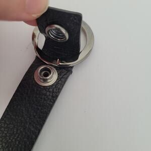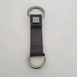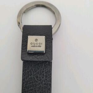 Gucci Key Chain Ring Fob Ring Charm Leather Black Silver Small Keychain Strap