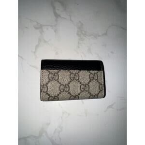 Elegant and functional, the Gucci Key Wallet features sleek black leather with GG canvas accents. Its gold-tone hardware and secure snap closure provide a luxurious touch to everyday organization. Perfect for those who appreciate style and practicality. Add this sophisticated Gucci piece to your collection today!
