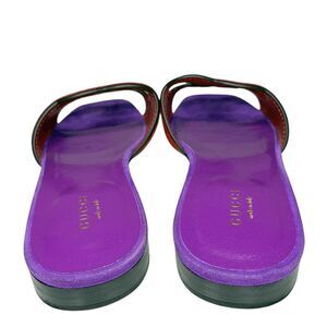 Step into bold luxury with these authentic Gucci Double G Cut Out Slide Sandals, featuring a striking red suede interlocking G strap paired with a purple Kid Scamosciato suede footbed. This rare color combination delivers standout style with unmistakable Gucci craftsmanship.