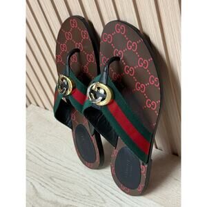 Gucci Kika Canvas Thong Sandals Women's Shoes Sz 38