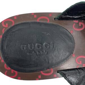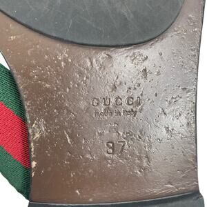 Gucci Kika GG Logo Web Thong Sandal Green Red Stripe Size 37