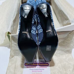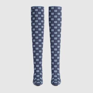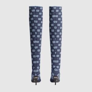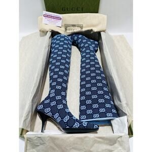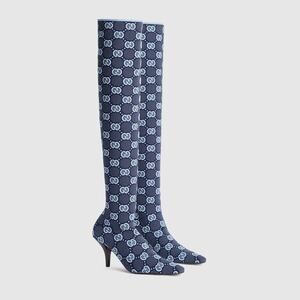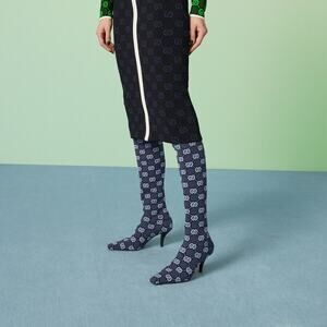 Gucci Knee High Boots 37/ US 7 GG Supreme Blue Knit Socks Pull On NIB