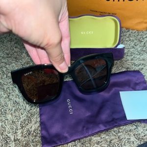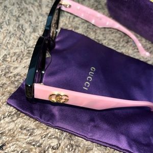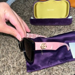 Gucci Ladies' Acetate Sunglasses - Pink & Black/Brown Lens