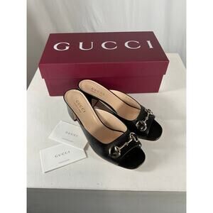 Gucci Lady Horsebit Black Leather Sandals Size 7