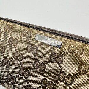This beautiful Gucci Zippy Wallet is perfect for anyone looking to add a touch of luxury to their wardrobe. Crafted in Italy with high-quality materials like brown canvas and leather, this wallet has a spacious interior featuring credit card slots and a wristlet for added convenience. Its dimensions of 7.48 inches in length and 3.54 inches in width make it a perfect size for everyday use. Vintage Gucci in preloved condition, one of the corners does need repair but it will then be 3X more worth than what you paid for it.