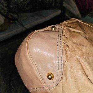 Pre-owned with flaws. This all leather hobo is clean inside and out but has water spots in the leather on both sides of the bag at the top of the bag and on one side of the bag. Also wear on corners. Please see all photos where the water spots are circled in red. The corners do show rubbing but the leather is intact with no tears or rips. Because of these issues is why price is so low. Interior is mostly clean and in good shape.