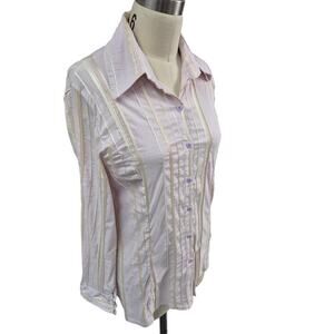 Gucci Lavender Stretch Button Up Blouse 3D White Satin Stripe XS