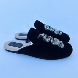Gucci Lawrence Velvet Snake Jewel Slippers 36 Box 6 Mules Princetown Black