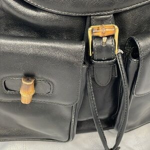 Gucci Leather Bamboo Backpack Black Designer Luxury Rucksack Twin Pocket