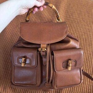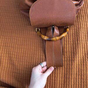 Gucci Leather Bamboo Backpack authentic camel color