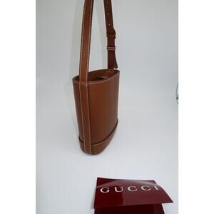 The Gucci Leather 73 Series Small Bucket Handbag in Brown offers a refined blend of vintage charm and modern style. Crafted from smooth leather with a compact bucket silhouette, it’s a chic everyday accessory with unmistakable Gucci appeal.