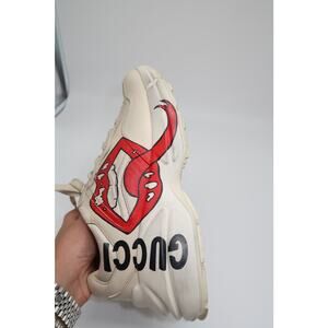 Gucci Leather Rhyton Mouth Print Lace-Up Low Top Sneakers Ivory Size 5.5