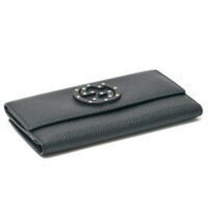 Gucci Interlocking GG Stud Fold Long Wallet Leather Black Includes a Certificate of Authenticity!
