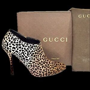 Gucci Leopard-Print Ponyhair Ankle Bootiest Zip-up Booties ๐ฎ๐น Made in Italy