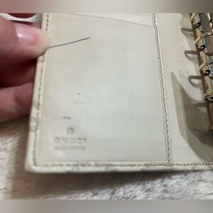 This great Chic vintage Gucci Light Beige Guccissima Leather Agenda Cover pattern. Light beige hue with gold hardware. Preowned with minimal usage. Has 2 ink marks within the interior nothing serious.