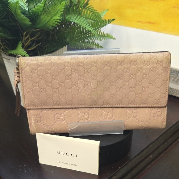 Gucci Light Pink Monogram Wallet with Gold Hardware