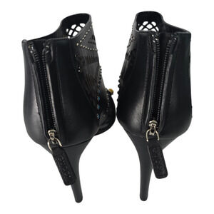 Gucci Lika Laser Cut Black Leather Jewel Studded Heeled Open Toe Booties 40