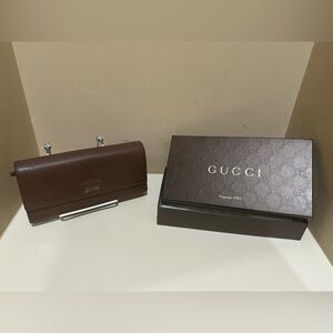 Gucci Limited Edition Brown Pebbled Long Wallet w/box