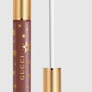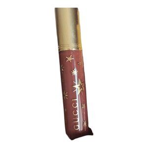 Luxurious Gucci lip gloss. Rich brown shade with a shimmering finish. Perfect for a glamorous look.