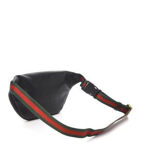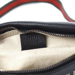 The Gucci Logo Belt Bag in Black Leatheris crafted from a grained, pebbled calfskin leather in Italy. This supple, yet durable belt bag doubles as a messenger bag and features the vintage Gucci logo, a webbed, adjustable strap, and zipper pouch.
