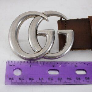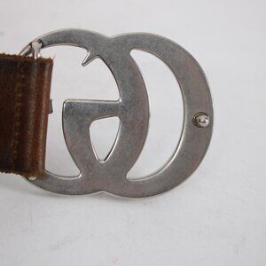Gucci Logo Buckle Belt 493949 120/48 Double G Brown Leather 51" Belt