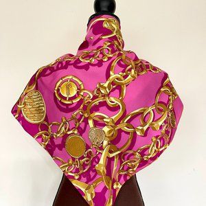 Gucci Logo Chains Hot Pink Gold Silk Twill Scarf with Gift Gucci Box