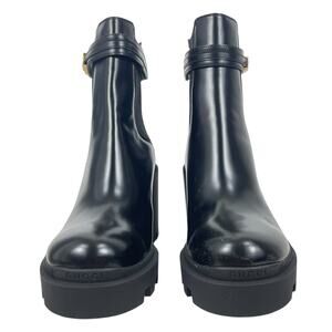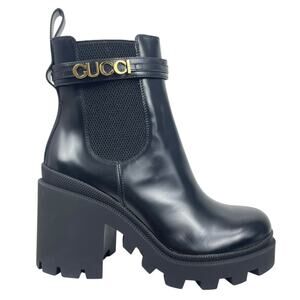 Gucci Logo Embellished Heeled Leather Chelsea Boots Black Size 39.5
