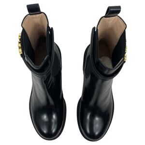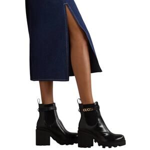 NEW Gucci Logo Embellished Heeled Leather Chelsea Boots Black