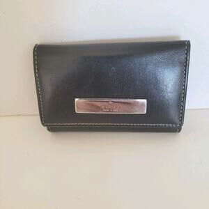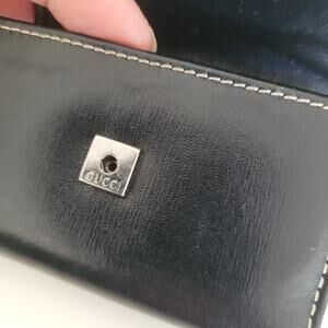 Gucci Logo Plate Key Holder Wallet Case Leather Small Unisex Black Trifold