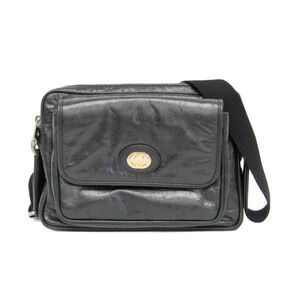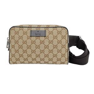 Gucci Logo Print Sherry Line Body Bag Waist Bag 527792 Black Leather Women's
