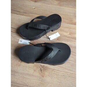Gucci Logo Rubber Platform Embossed Marmot Thong Sandals