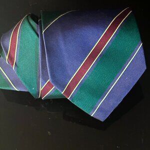 Gucci Logo Silk Tie Vintage Striped Blue Green Red Gold VTG Neckwear Academia