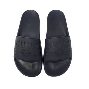 Gucci Logo Slides Rubber Sandals Slip On Black Italy Womens Size 40 US 10