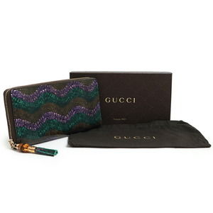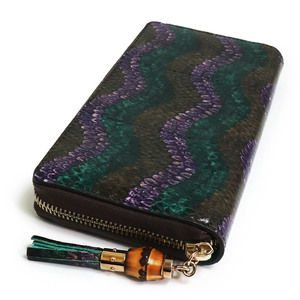 Gucci Bamboo Zip Long Wallet Exotic Python Leather Green Purple Brown Includes a Certificate of Authenticity!