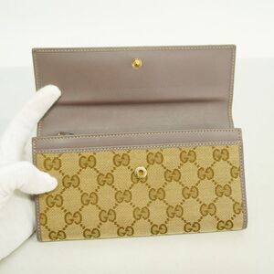 Gucci Long Wallet GG Canvas 256998 Canvas Brown Chien Pan Gold Hardware Women's