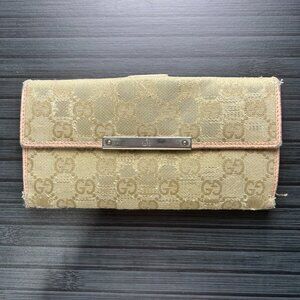 A classic and functional accessory from Gucci — this authentic long wallet features the iconic GG canvas pattern and a unique W hook closure for secure, stylish organization. Spacious and practical, it’s perfect for everyday use.