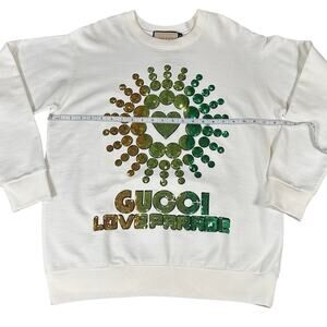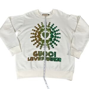 Gucci Love Parade Sequin Cotton Sweatshirt White NWT Oversized Small