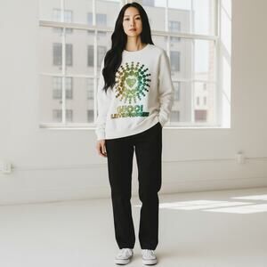 Designed with an intentionally oversized fit, this sweatshirt is labeled Size Small and comfortably fits up to a US 8/10, making it ideal for relaxed styling or layering. Crafted from premium cotton, it offers softness, structure, and standout designer appeal.