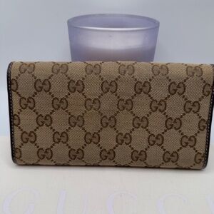 he Gucci Lovely Hearts GG Logo Canvas Long Bifold Wallet in pink is a stylish and practical accessory for women. Made from a combination of leather and canvas, this wallet features a heart-shaped design with the iconic Gucci logo accents. With multiple credit card slots and a secure zipper closure, this wallet is both fashionable and functional. Measuring 7 1/2" in length and 4 1/8" in width, this wallet is the perfect size to carry all your essentials in style. Made in Italy, this Gucci wallet exudes luxury and sophistication.