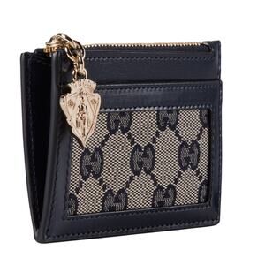 Gucci Luce Embellished Textured-Leather Canvas-Jacquard Cardholder - NAVY NWB