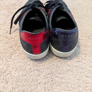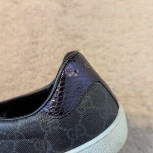 The Gucci Ace GG Supreme Black is a luxurious and stylish sneaker that combines classic design with modern flair. Featuring the iconic GG Supreme canvas in a sleek black colorway, these shoes showcase Gucci's signature craftsmanship and attention to detail. The low-top silhouette is complemented by smooth leather trim and the recognizable red and green web stripe, adding a pop of color to the sophisticated design. These versatile sneakers are perfect for elevating any casual outfit. The comfortable rubber sole ensures all-day wearability, while the premium materials guarantee durability and longevity. With their timeless appeal and subtle branding, the Gucci Ace GG Supreme Black sneakers are an investment piece that will remain stylish for years to come. Our experts state this product is great for fashion-forward individuals who appreciate luxury footwear with a sporty edge. The combination of comfort and high-end design makes these sneakers ideal for both everyday wear and special occasions.