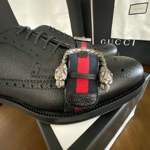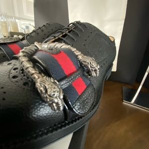 Gucci MEN'S MARTIN BROGUE LEATHER BUCKLED SHOES