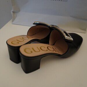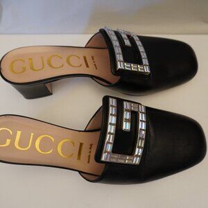 Gucci Madelyn Mules Crystal Logo Black Leather Size 38 8