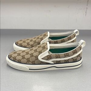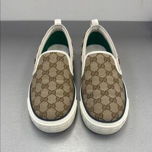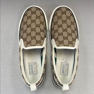 Stylish and comfortable, these Gucci man slip-on shoes feature a classic brown design. Perfect for everyday wear. Comes with box