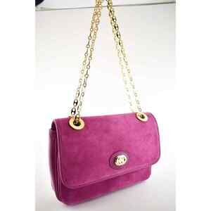Gucci Marina Small Fuchsia Pink Suede Gold Logo Chain Shoulder Crossbody Bag